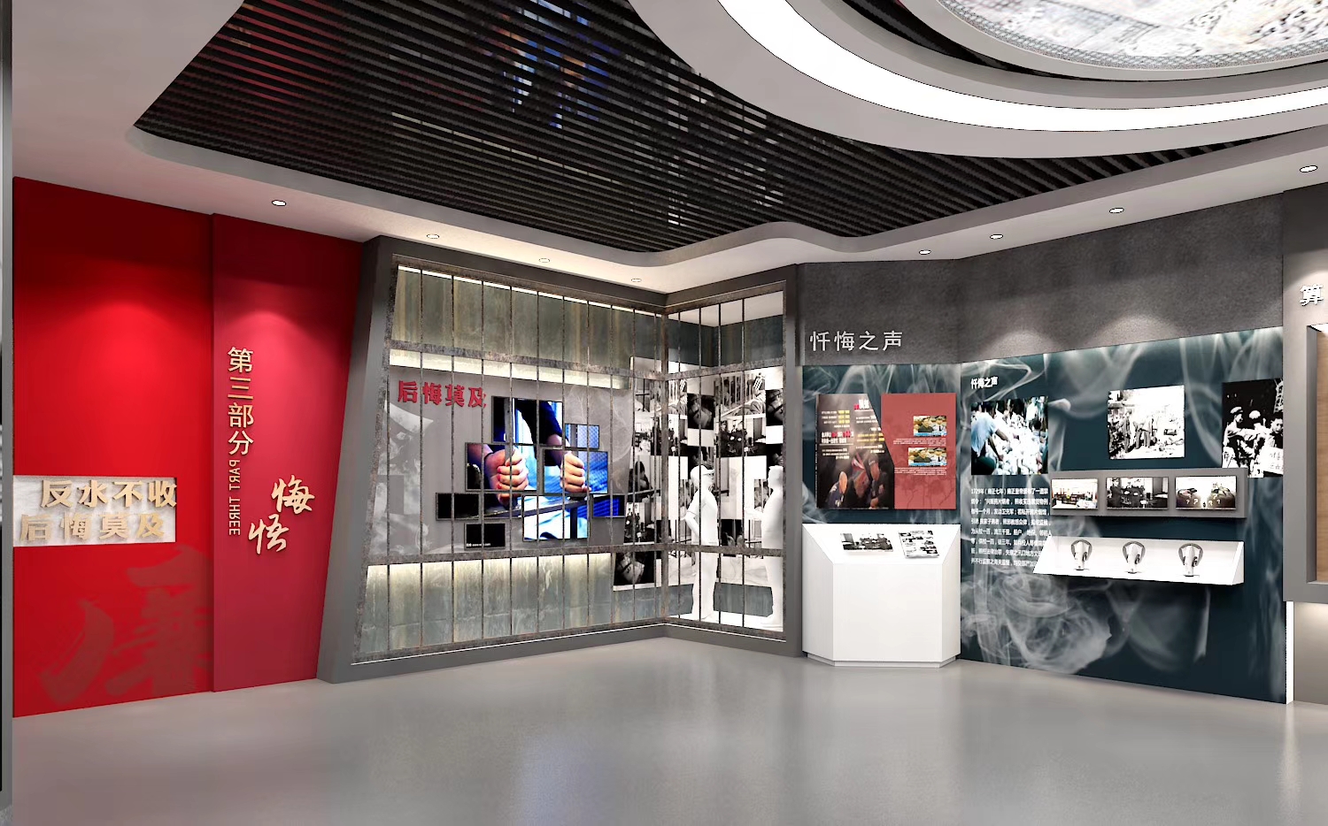 警示教育基地理念公司有效地整合各种传播要素,并将其化繁为简呈现出来。反腐倡廉是一个很宽泛的话题,要传播的内容很多,展厅作为一种创新的教育形式,将不同的内容分割开来,并将其运用适合的手段和载体加以诠释,以人为本,使传播效果有方向化。