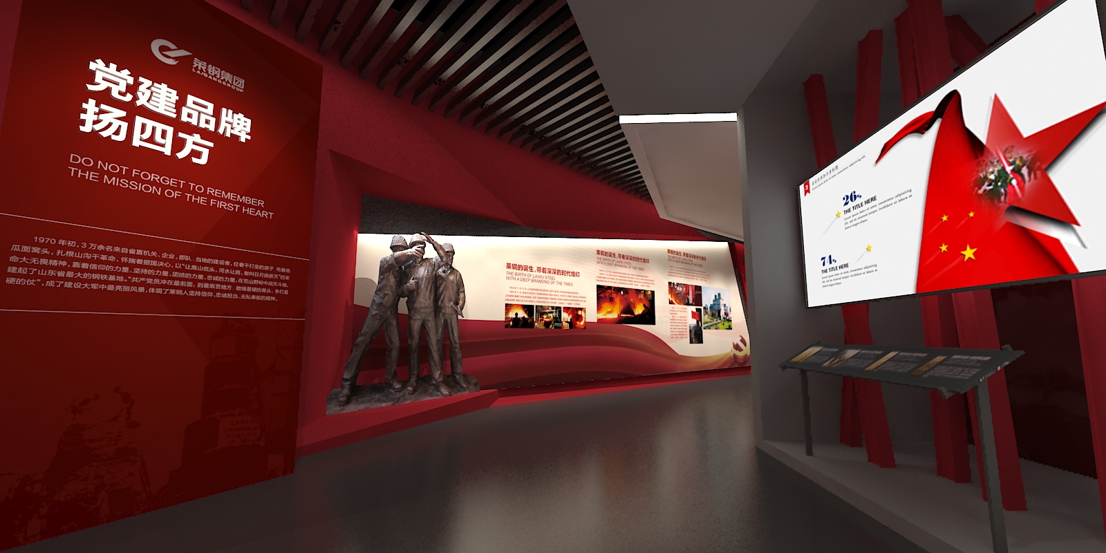 莱钢智慧党建展厅必须“红”出精采。我国的红色文化艺术可以说是博大精深,可以从展厅中得到文化教育,感受鲜红色观念,那麽那样的展厅便超过了生活的意义。愿意突显那样的实际意义,关键的就是说要找技术专业的工程设计公司,保证专业人士设计,为终的展厅实际效果打下基础。不一样种类的党建展厅设计所必须留意的重中之重与关键点全是不一样的。因而要明白怎样才能更强的呈现红色文化艺术,能够在设计构思上进而突显,贡献健全的鲜红色展览厅。